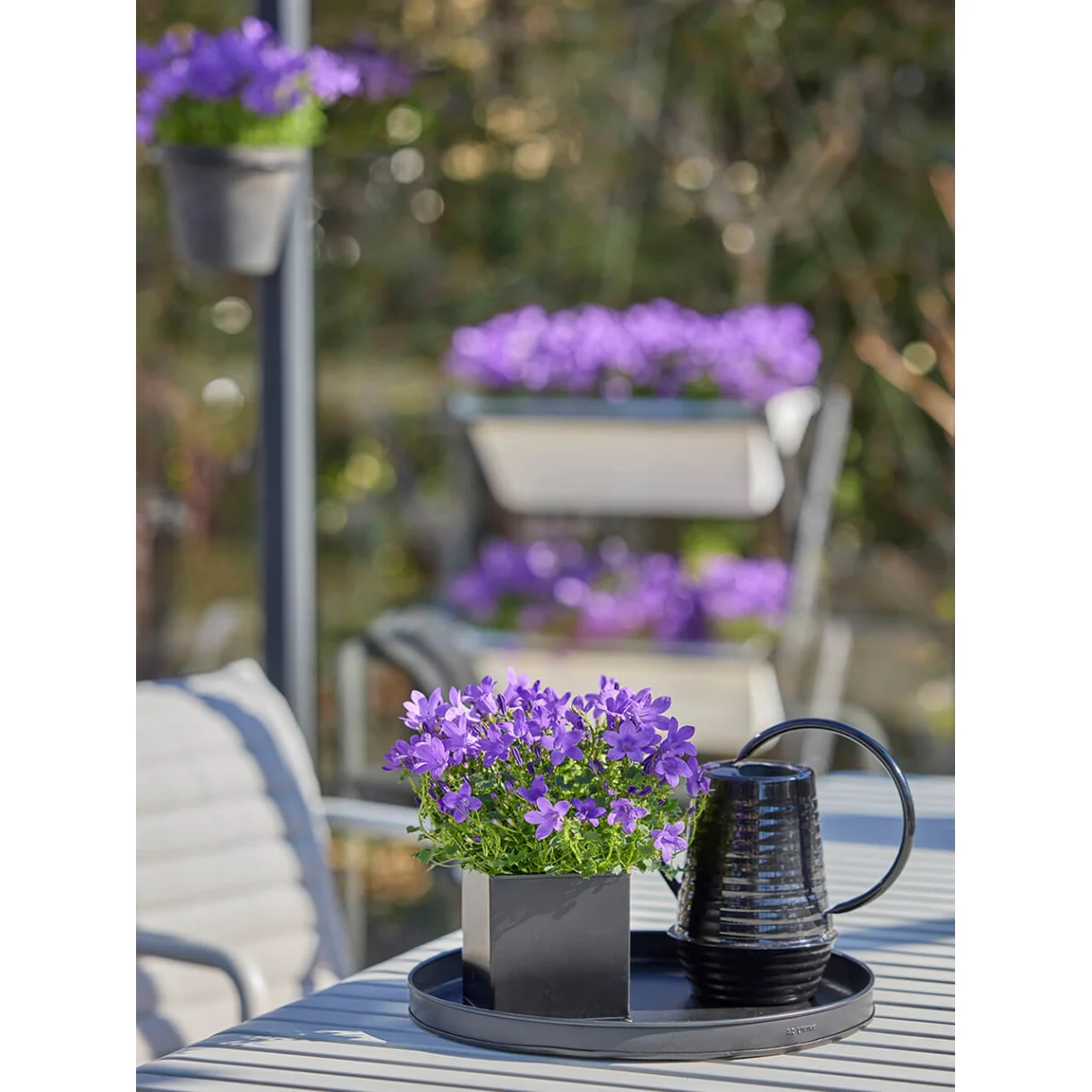 Dekobakken er lavet i galvaniseret plade (0,40 mm - sort pulverlakering) og er desuden ideel til bl.a. blomsterhandlere og havecentre. Passer ligeledes i den private husholdning til beplantning og udnyttelse på terassen, på altanen eller i haven.